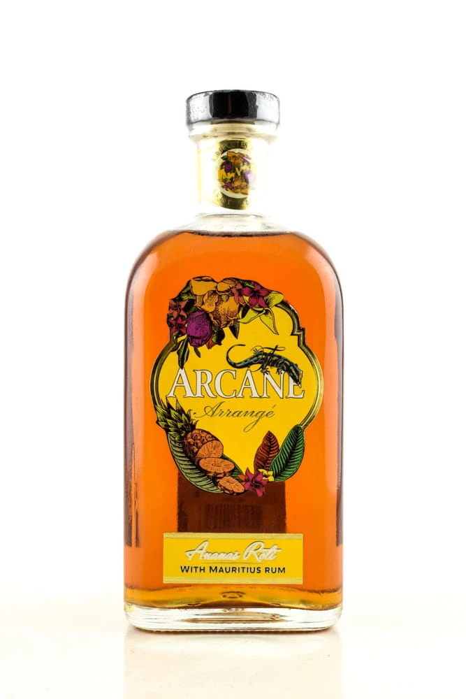 In der Flasche glänzt Arcane Arrangé Ananas Rôti in einer schönen Bernsteinfarbe.