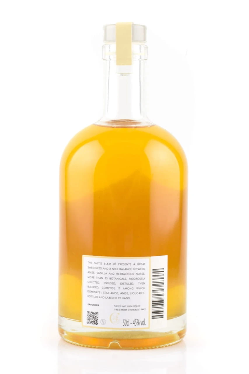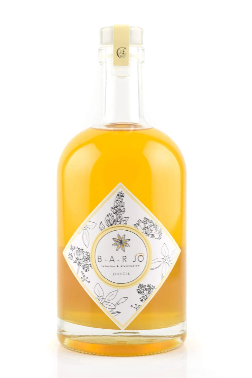 B-A-R Jo Pastis ist ein eleganter Pastis Sternanis, grünem Anis und Lakritze, dazu gesellen sich 35 weitere Botanicals Koriander, Wacholder und Vanille.