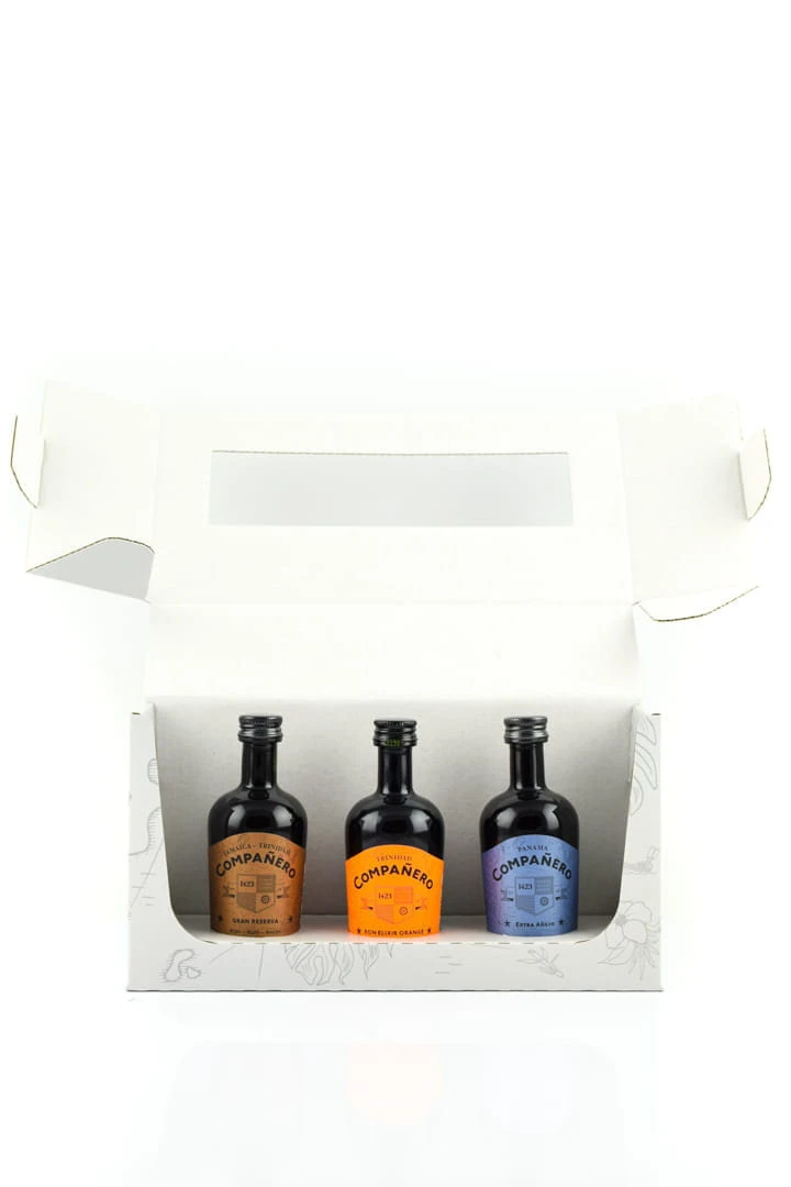 Jede Flasche in dieser Geschenkbox enthält 0,05 Liter eines köstlichen Rums. Damit hast du die perfekte Gelegenheit, die drei beliebten Rumsorten der Ron Compañero Serie zu probieren und miteinander zu vergleichen. Lass dich von den unterschiedlichen Geschmacksprofilen überraschen und finde deinen persönlichen Favoriten.