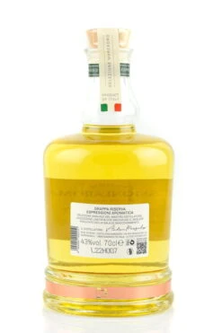 Der Espressioni Aromatica Grappa Riserva Marzadro ist eine jährliche Auswahl verschiedener Fässer des Destilliermeisters Andrea Marzadro, eine limitierte Auflage, die das beste Ergebnis des Reifungskellers enthält.