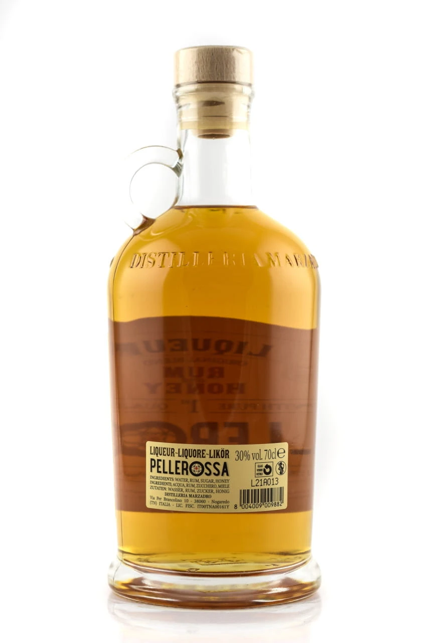 Pellerossa ist ein Likör aus bis lang gereiftem Rum, dem kostbarer Honig aus Trentiner Imkereien hinzugefügt wurde.