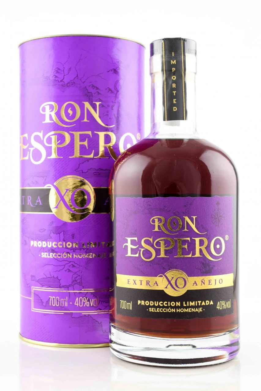 Der Ron Espero XO Extra Anejo ist ein eleganter Blended Rum aus karibischen Rumsorten mit einem Alter zwischen 12 und 18 Jahren – hergestellt im Solera-Verfahren.
