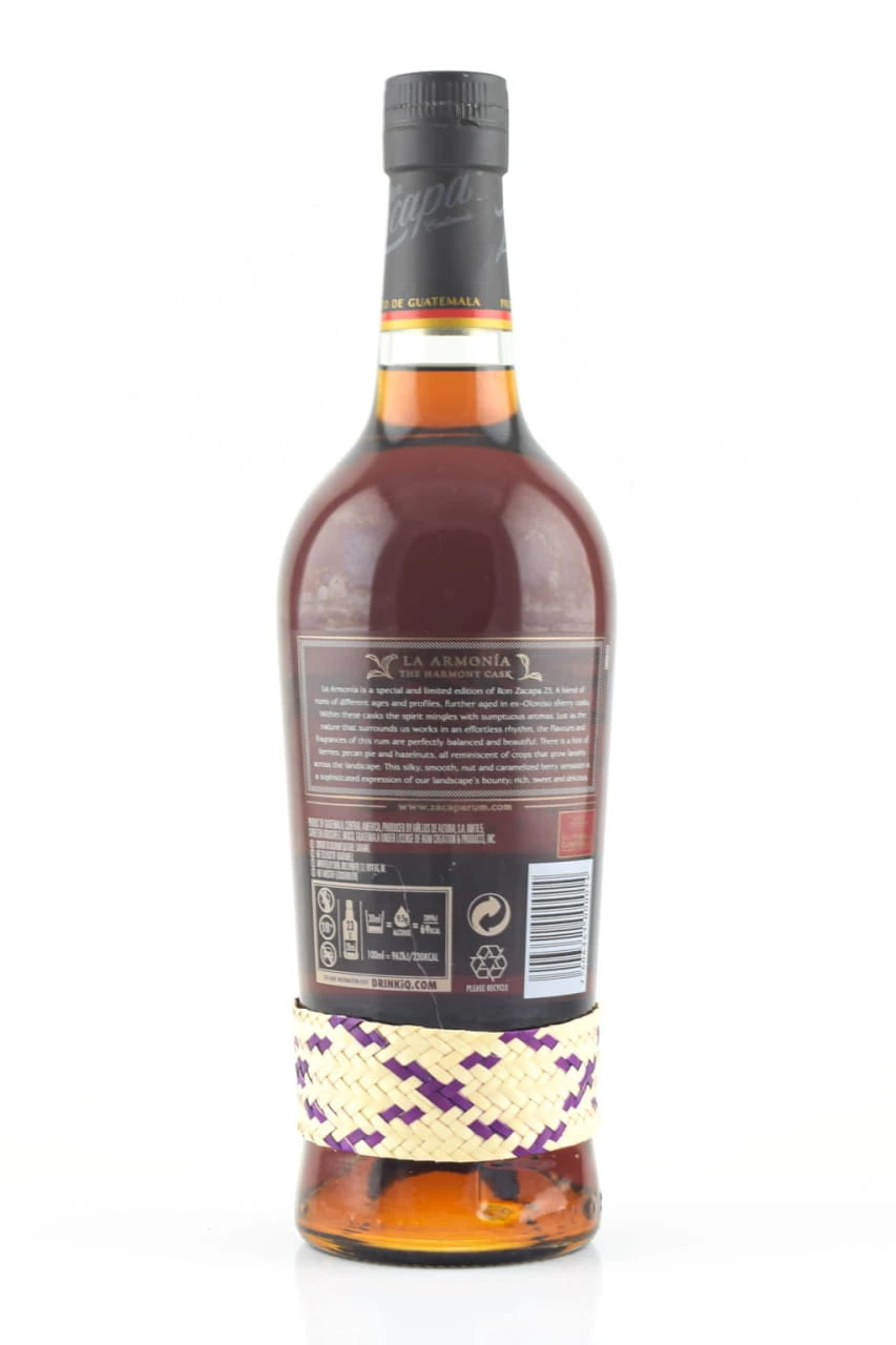 - Der Zacapa La Armonia hat eine zweite Reifung in Ex-Oloroso-Sherry-Fässern