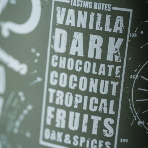 Geschmack: sehr mild und weich mit einer feinherben Süße von dunkler Schokolade – Vanille und Kokos gehen über zu tropischen Fruchtnoten mit Anklängen von Waldbeeren, dazu stoßen feine Holznoten